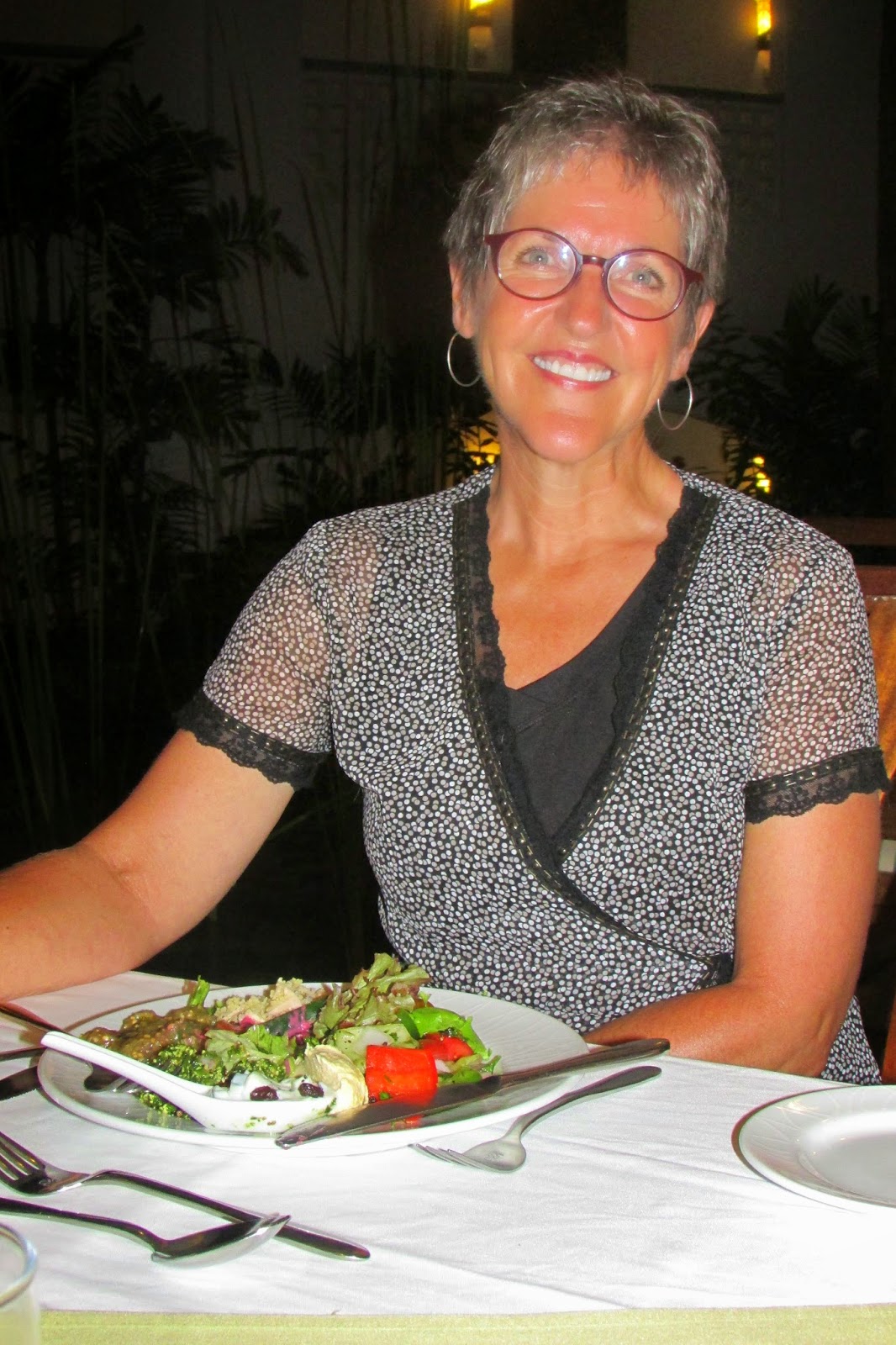 When we got home, Marilyn who is an observer with A Better World had arrived. She is very nice and fit into our little band of strangers like she had been there all along. We went out to dinner at a fancy buffet down the beach called the White Sands. It is huge and opulent. There are koi ponds all around the dining room. But first, we had to wait for the dining room to open so we had a Dawa in the tables overlooking the hotel grounds and beach. Good timing, the full moon was just rising, huge and red, over the ocean. Beautiful.